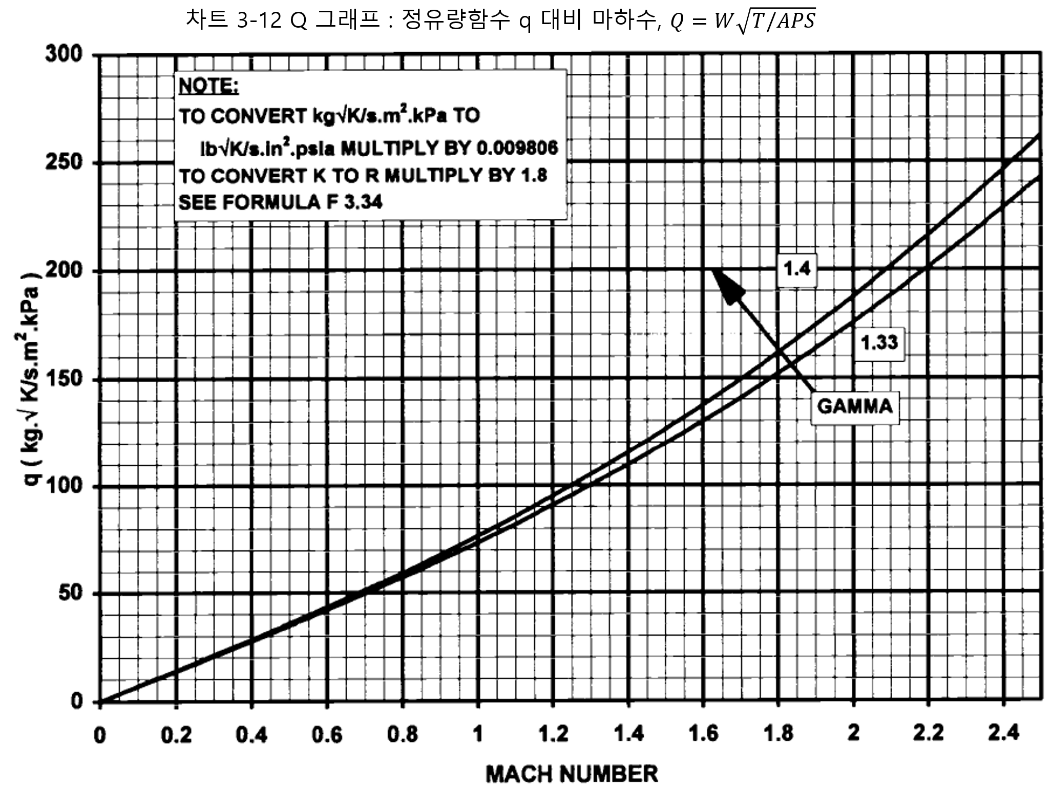 . 정압에 기초한 유동함수(q) 대비 마하수 – 차트 3.12