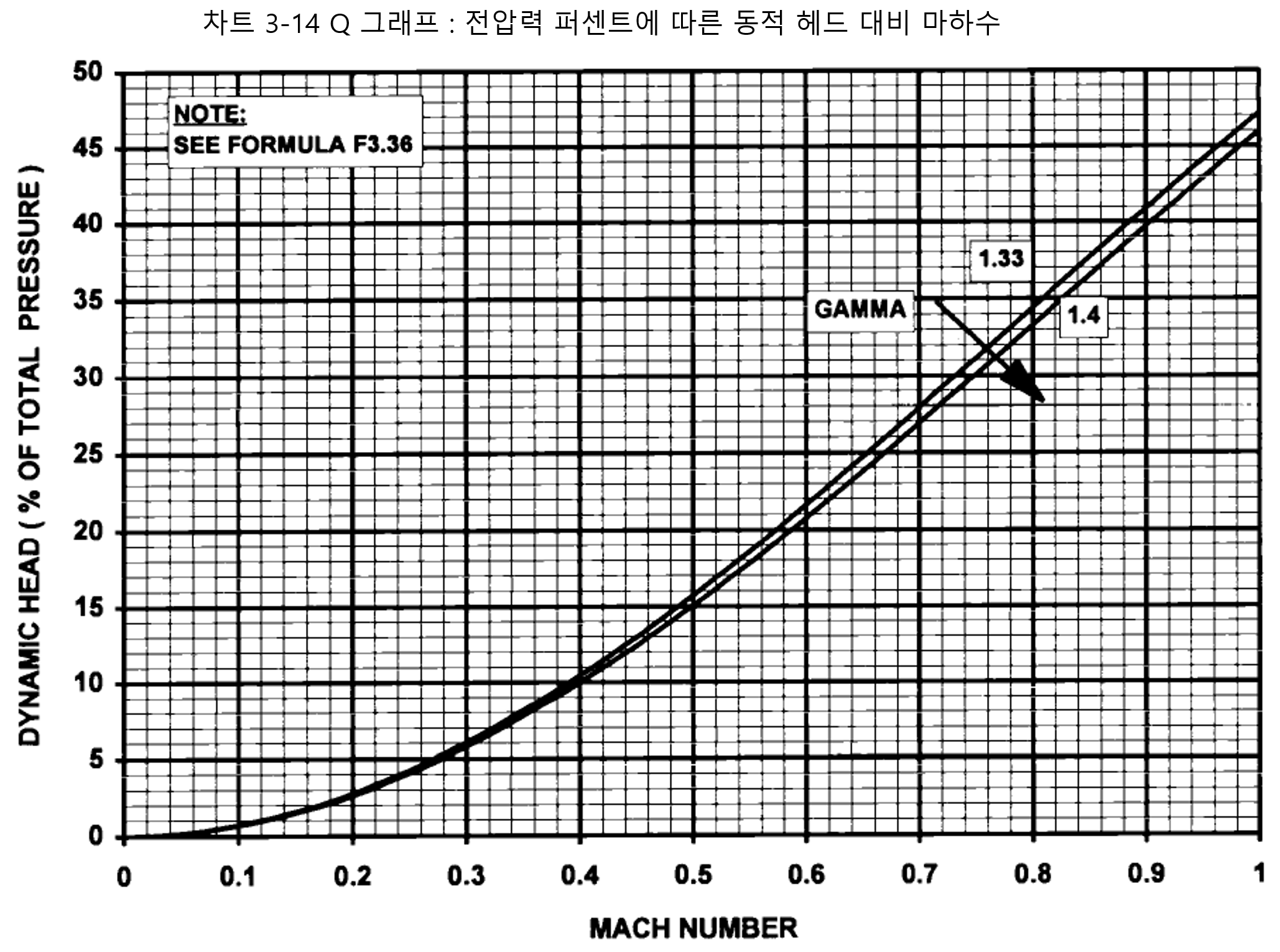 . 전압력의 백분율에 대한 하나의 동적 헤드 대비 마하수 – 차트 3.14