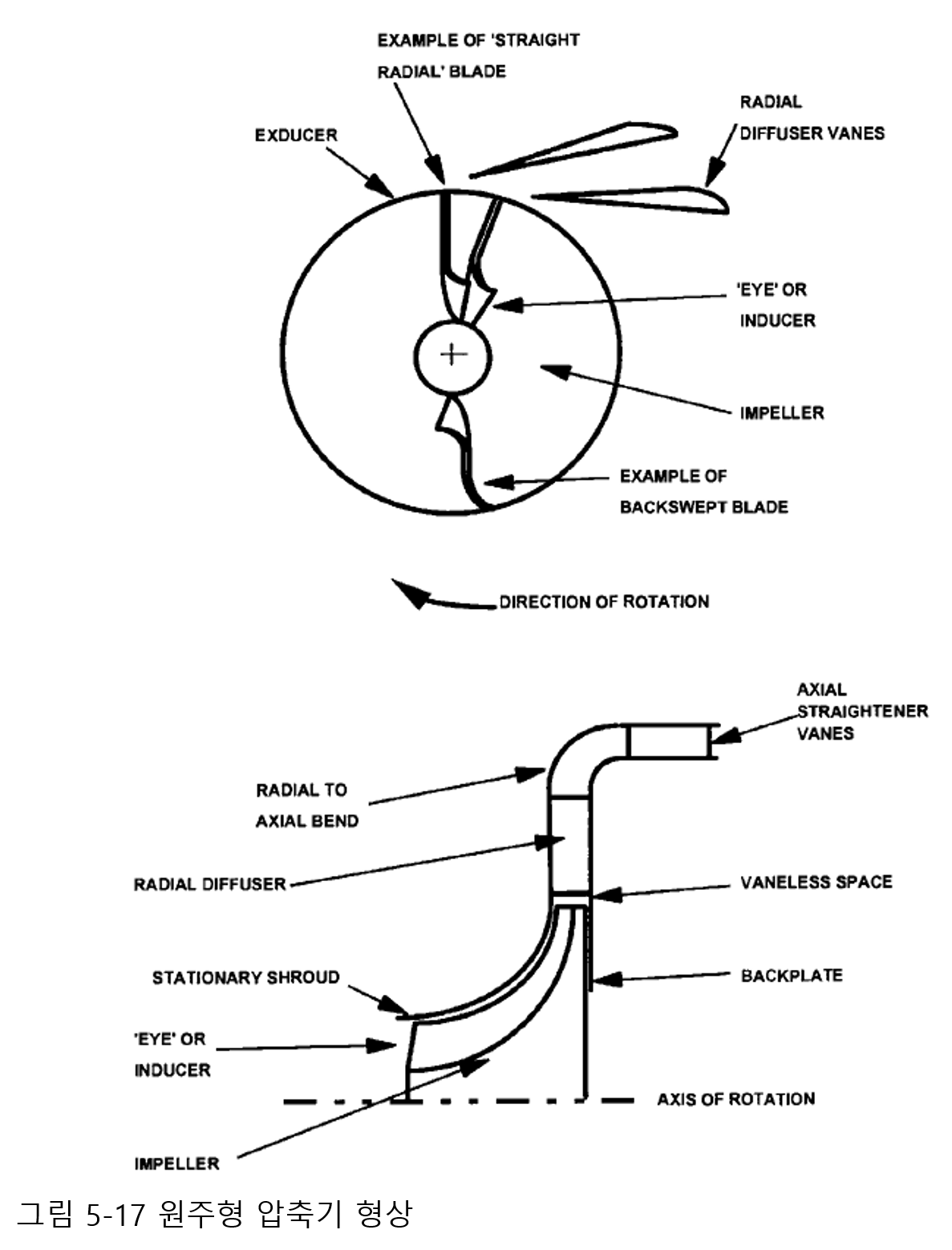축류 압축기에 대한 5.1.2절의 설명은 모두 원심류 압축기에 동일하게 적용됩니다.